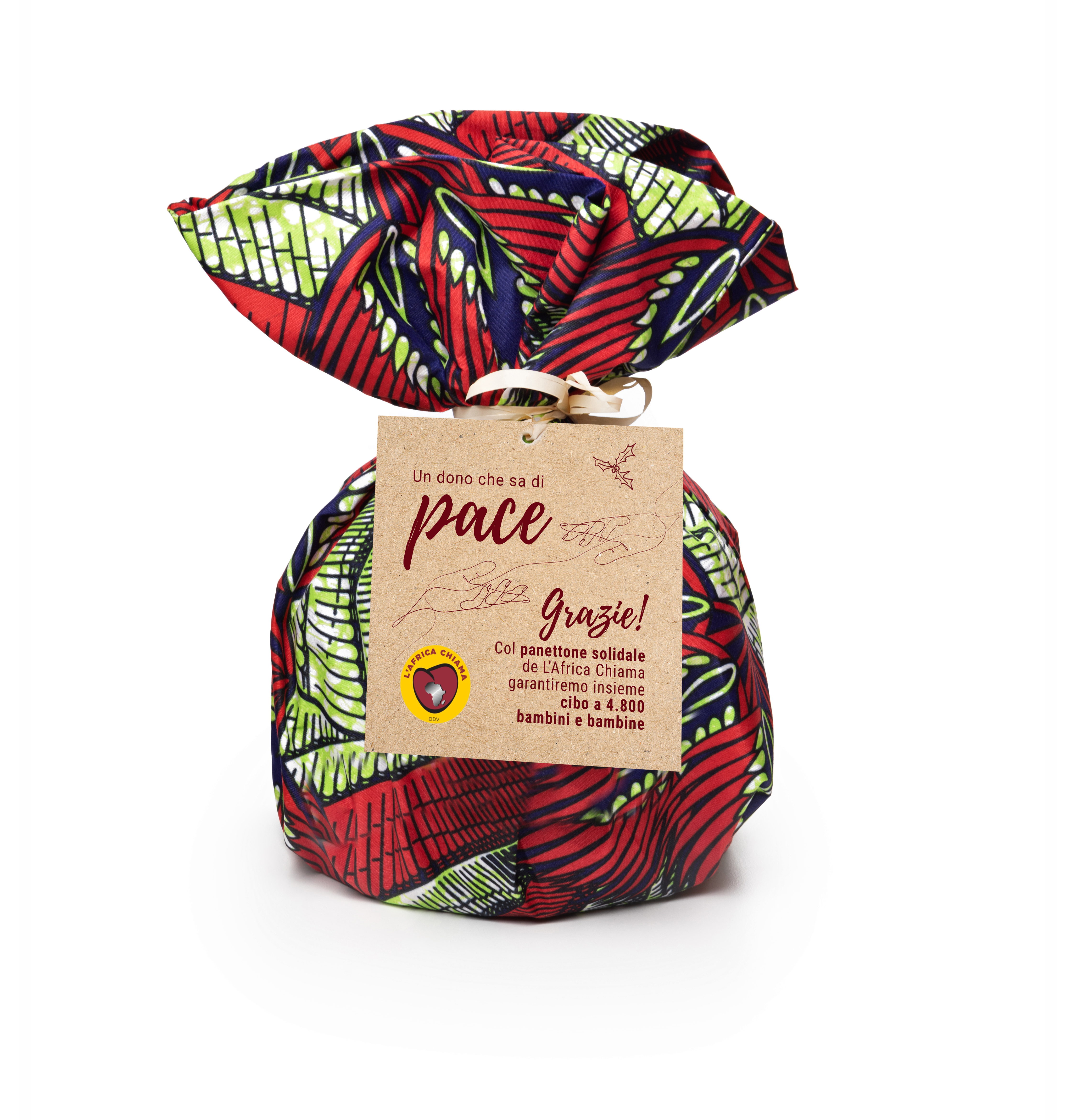Non solo un panettone: infatti acquistandolo riceverai subito un copricuscino in stoffa africana (fantasie assortite) realizzato dalle donne della comunità di Kanyama in Zambia.