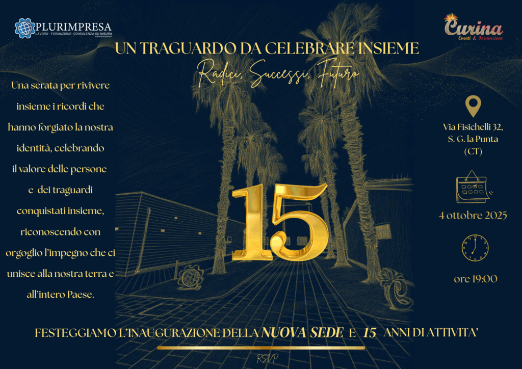 Sabato 4 ottobre gli amici di Plurimpresa e Curina festeggiaranno i 15 anni di attività e l’inaugurazione della nuova sede.