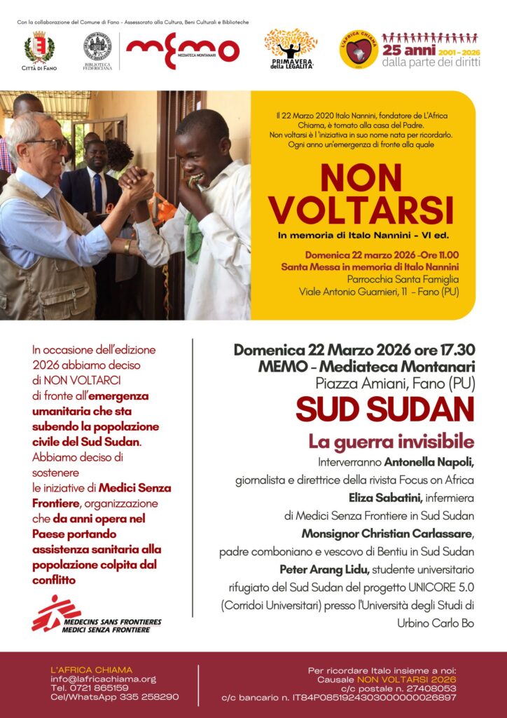 Come ogni anno, in occasione di questo appuntamento, L’Africa Chiama sceglie di destinare una donazione a sostegno di una crisi umanitaria particolarmente grave o poco raccontata. Per il 2026 la scelta è ricaduta sul Sud Sudan, e la somma raccolta sarà destinata a Medici Senza Frontiere, organizzazione che da anni opera nel Paese portando assistenza sanitaria alla popolazione colpita dal conflitto.
