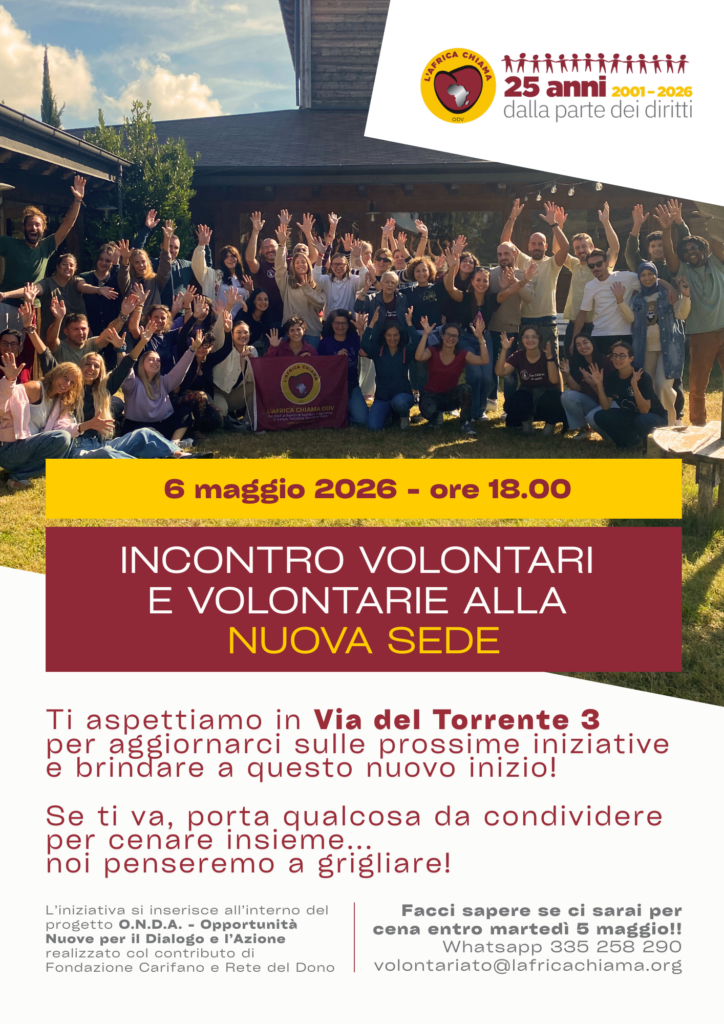Ci siamo: dopo settimane di traslochi, lavori e preparativi, è finalmente arrivato il momento di goderci insieme la nuova sede de L’Africa Chiama ODV con il primo incontro dedicato a volontari e volontarie!