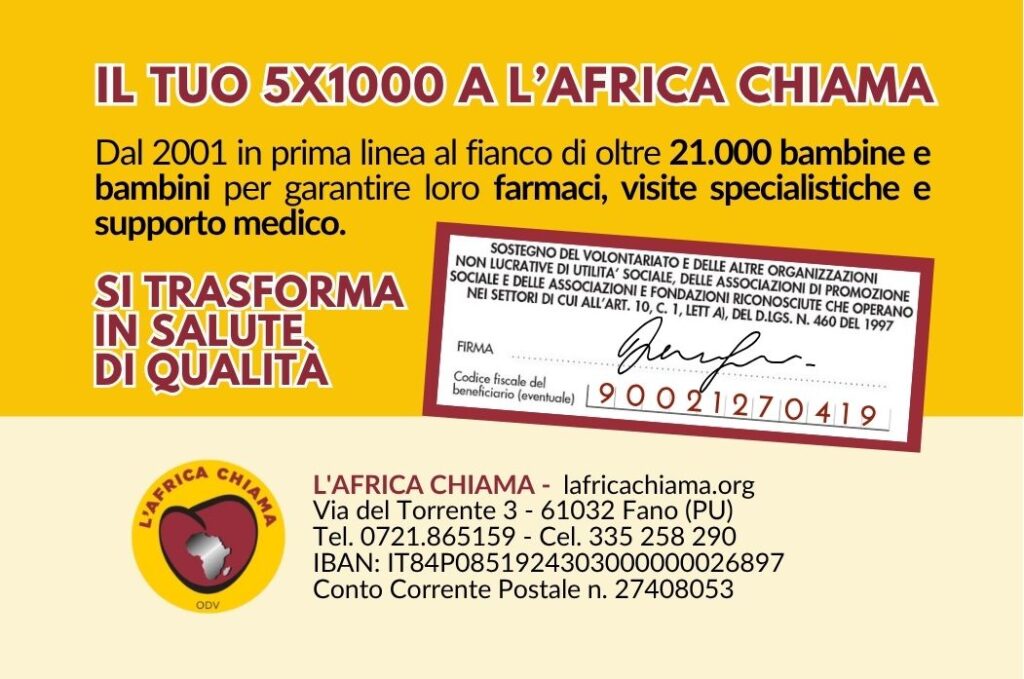 Destinando il tuo 5×1000 a L’Africa Chiama – CF 90021270419 – sostieni: