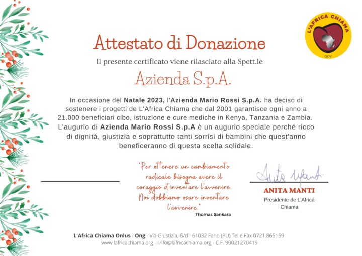 ATTESTATO DI DONAZIONE