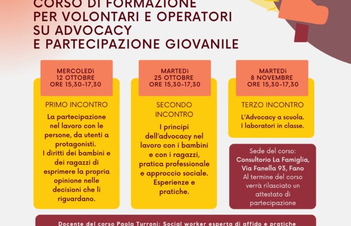 Corso di formazione gratuito per volontari e operatori su advocacy