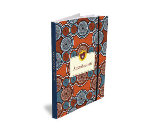 Agenda settimanale, dagli accesi colori che ricordano tessuti e fantasie africane, comoda e pratica con inserti mensili dedicati a note e appunti personali